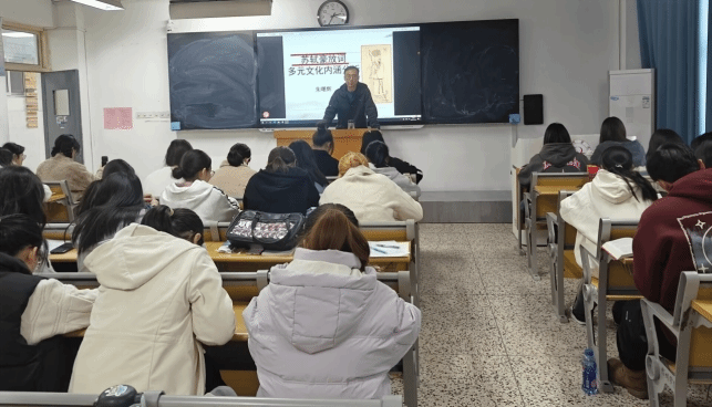 为推进优秀传统文化遗产在当代的传承与弘扬,2024年11月20日下午,文学与传媒学院朱曙辉副教授在教学楼A311教室举办了“苏轼豪放词的多元文化内涵分析”专题学术讲座,23级汉语言文学专业全体学生参加了此次讲座。