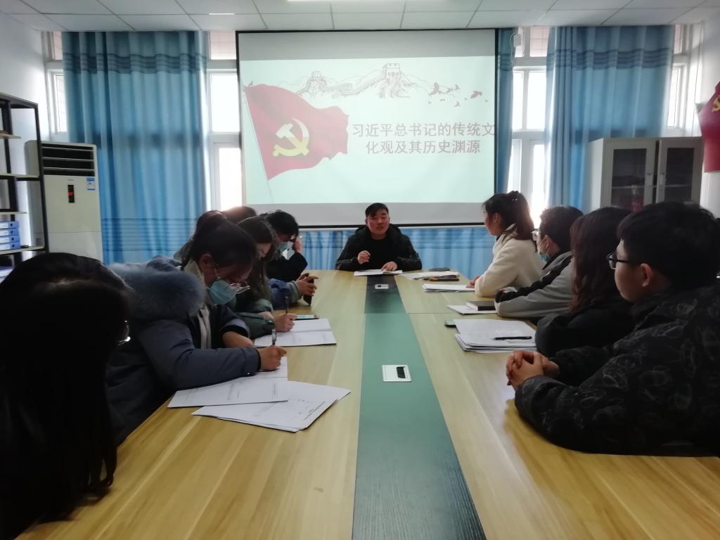 文学与传媒学院文化产业管理学生党支部于2020年12月21日下午在教学楼A楼党团活动室组织党课学习。本次党课的主讲人为文化产业管理学生党支部书记王龙龙,参加党课学习的是支部全体学生党员。本次党课的学习内容为“习近平总书记的传统文化观及其历史渊源”。