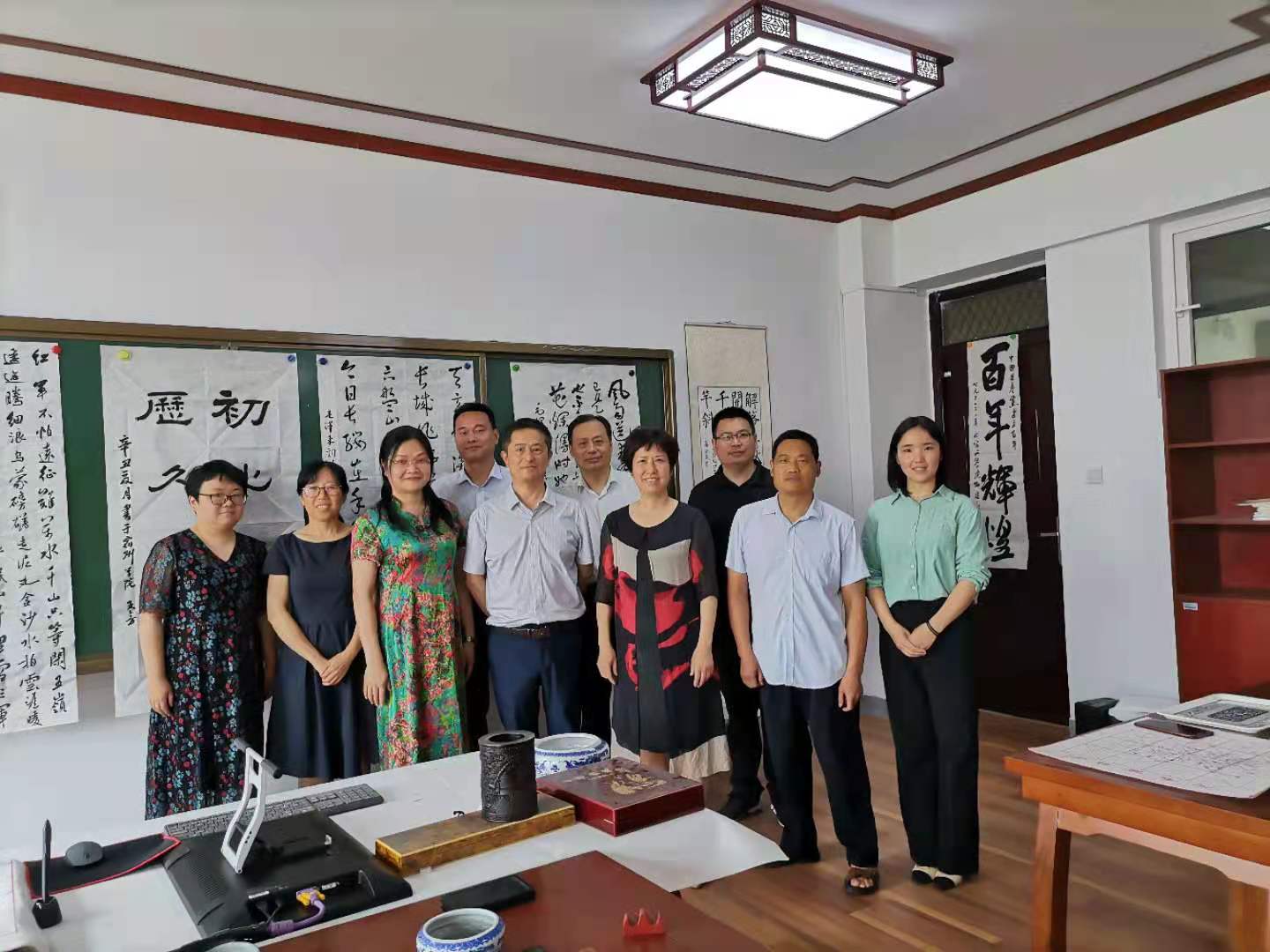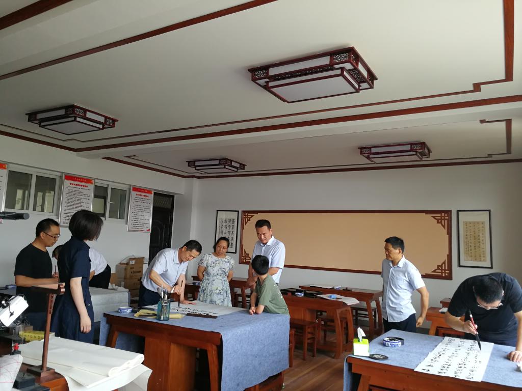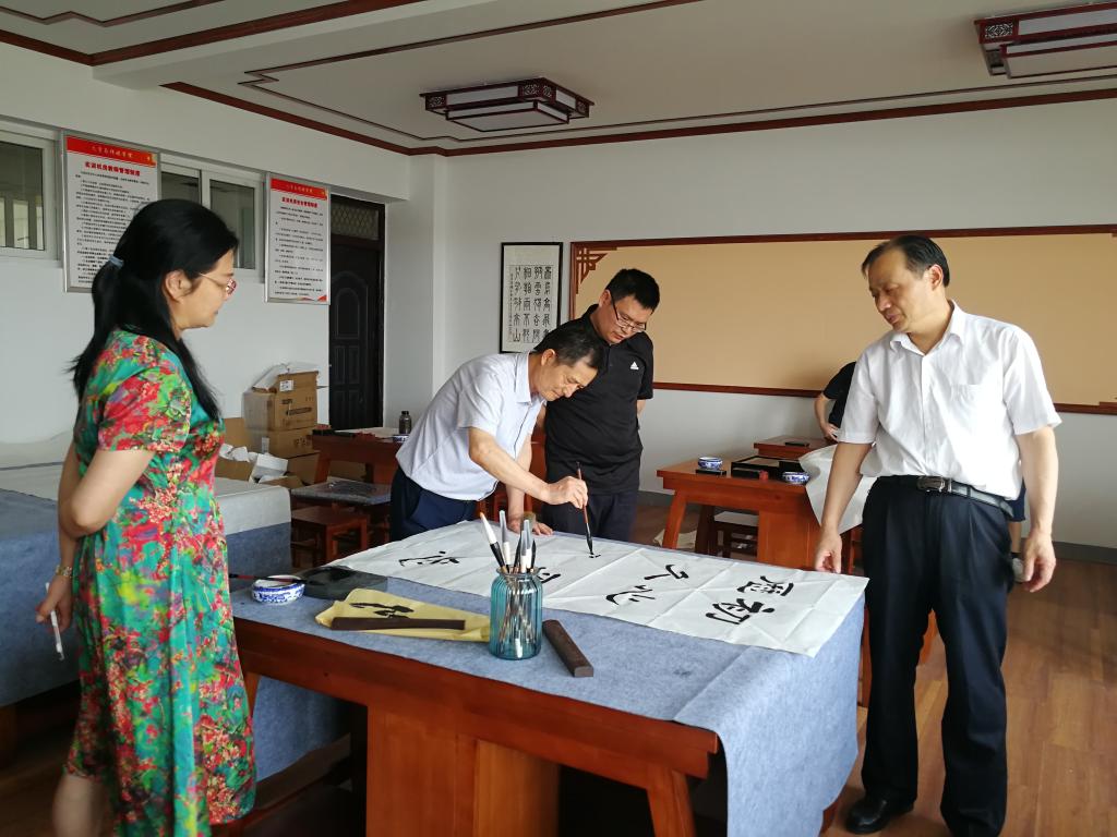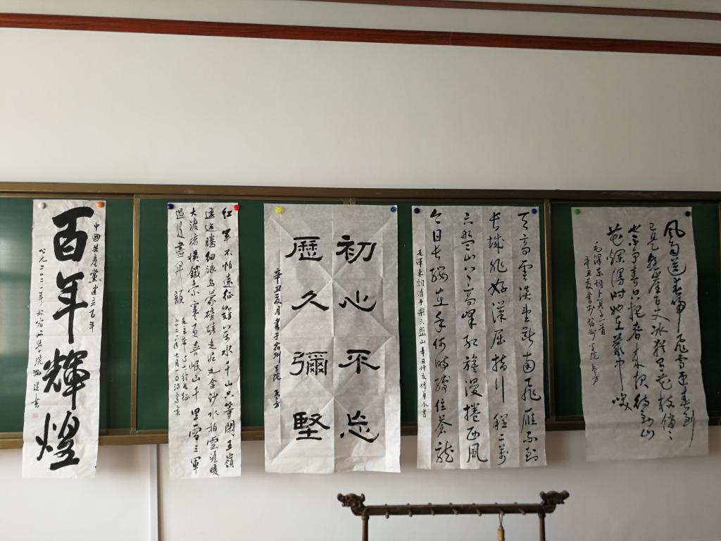 文学与传媒学院党委书记李月云、院长蒋宗霞、党委副书记王绍卫、副院长张德岁及部分教师现场观摩学习。翰墨飘香,一幅幅墨宝令人赏心悦目,全体老师感受蕴含于作品中的艺术魅力和澎湃力量,进一步坚定了学党史、颂党恩、跟党走的信念,纷纷表示将立足本职岗位,为学院的进一步发展贡献力量。
