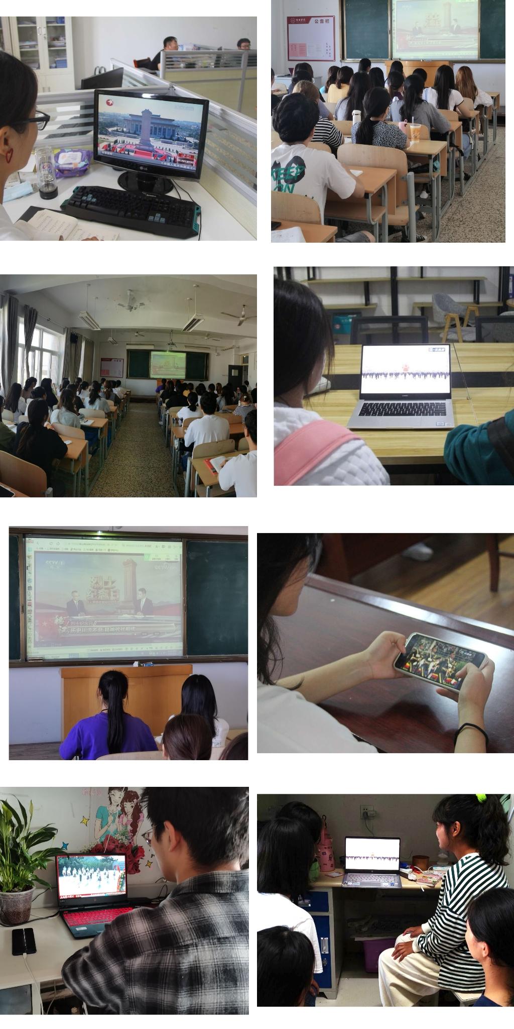直播结束后,各党支部、班级、团支部纷纷利用课余时间观看习近平等党和国家领导人同各界代表在天安门广场向人民英雄敬献花篮的现场直播,回望百年党史,深入推进党史学习教育。