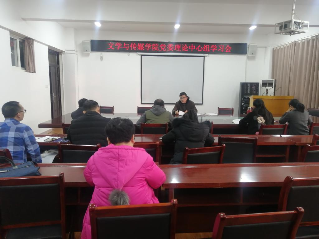 12月13日下午,文学与传媒学院在东教A303室召开党委理论学习中心组(扩大)学习会,学院党政班子成员、科级以上干部参加学习会,学习会由学院党委书记杨文艺主持。