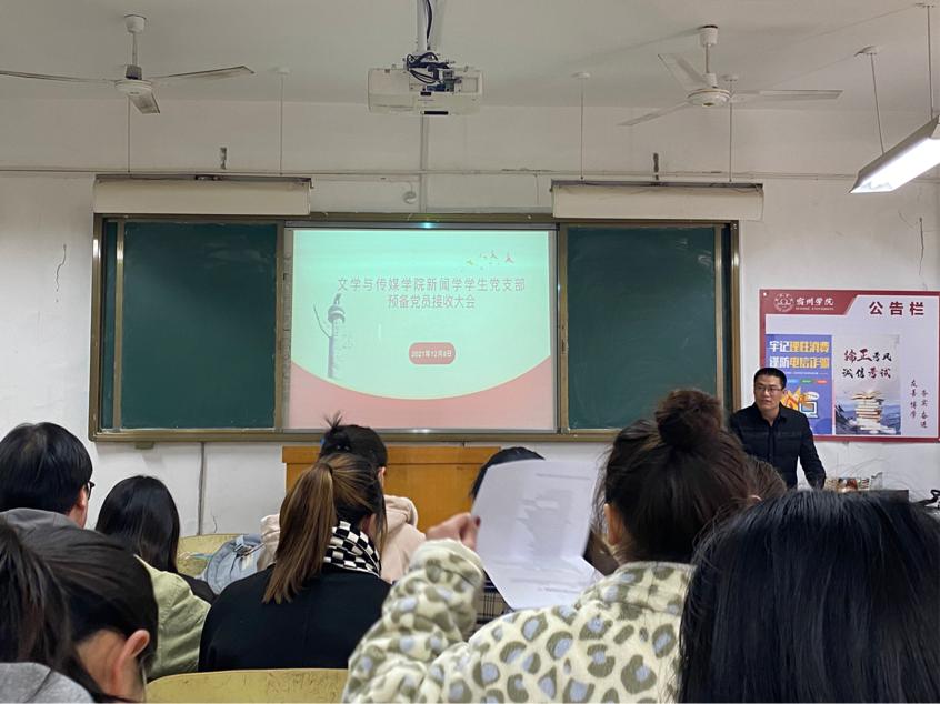12月8日中午十二点半新闻学党支部在东教A403举办接收预备党员大会,本次会议由支部书记严茂亮主持。3名毕业班党员,6名预备党员,以及10名发展对象参会。