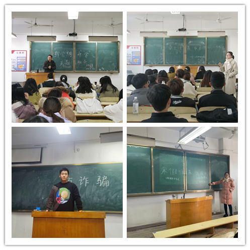为了增强大学生的安全防范意识,保证开学初各项学生管理工作有序开展,2月22日-3月3日,文学与传媒学院各班级陆续召开2022春季学期安全主题系列班会,班会内容主要包括常态化疫情防控和防电信诈骗安全教育。
