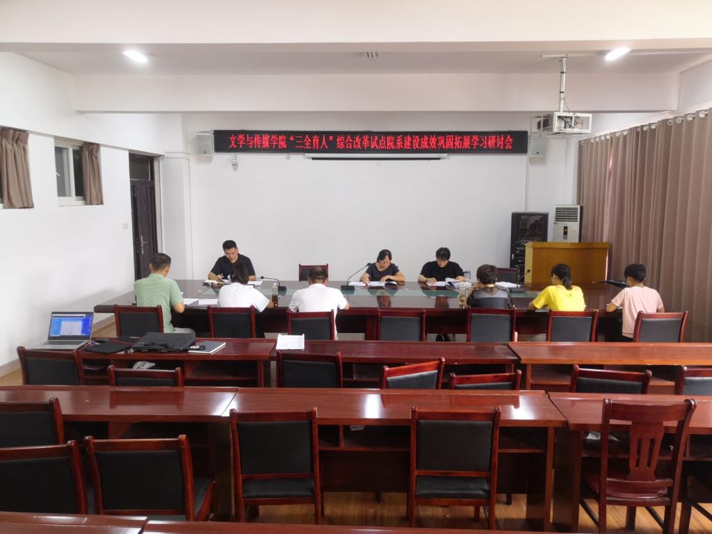 7月16日,文学与传媒学院在教A303会议室召开“三全育人”综合改革试点院系建设成效巩固拓展学习研讨会。文学与传媒学院党政班子成员及科级干部参加学习研讨会,会议由学院党委副书记刘影主持。