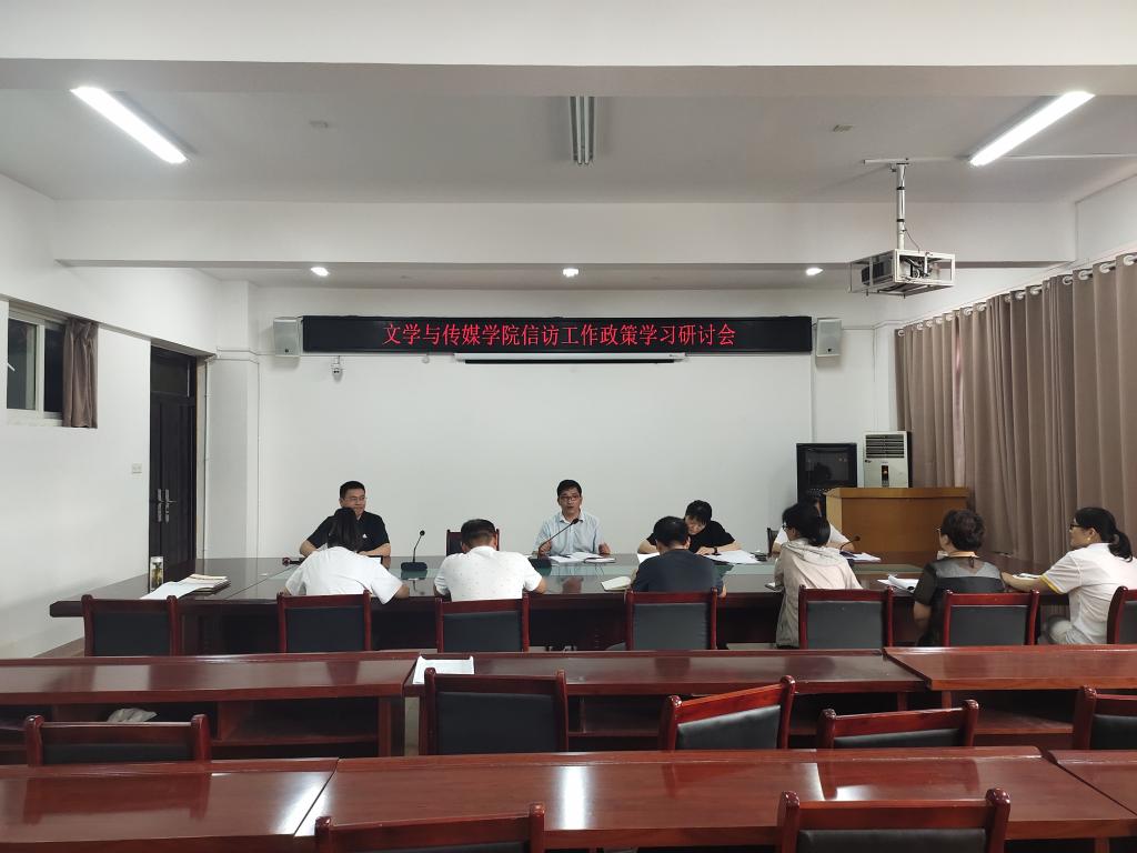 8月6日,文学与传媒学院在教A303会议室召开信访工作政策学习研讨会。文学与传媒学院党政班子成员及科级干部参加学习研讨会,会议由副院长满建主持。