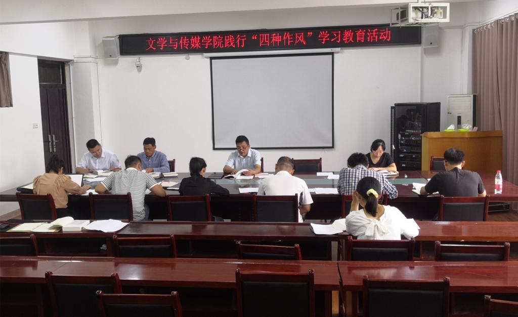 9月14日下午,文学与传媒学院开展践行“四种作风”学习教育活动,会议由学院党委副书记、纪委书记刘影主持,学院党政班子成员、教研室主任、科级干部参加会议。