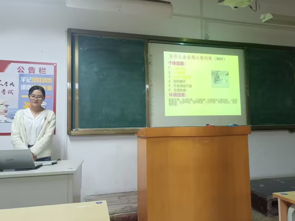 辅导员李雪玲老师通过主题班会、谈心谈话等各种形式讲述了心理健康的涵义、标准、大学生常见的心理问题、心理原因剖析、心理问题解决对策等。