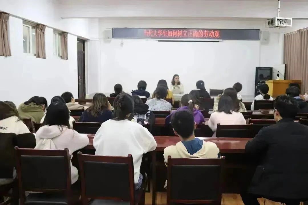 根据《安徽省关于全面加强新时代大中小学生劳动教育的实施意见》要求,11月 11日下午,文学与传媒学院邀请优秀校友马盼盼在东教A303为同学们上了一节以“当代大学生树立正确的劳动观”为主题的精彩思政课。文学与传媒学院党委书记杨文艺、分团委书记王磊和学生代表参加了活动。