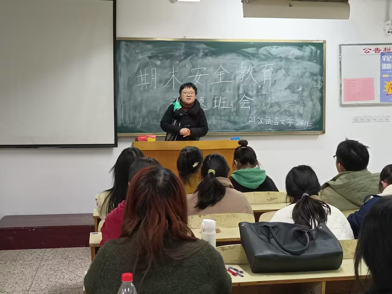 122日,21汉语言文学2班在教学楼A312室,在吴琼瑶老师的带领下开展了期末安全教育主题班会。吴琼瑶老师重点提醒了同学们开始期末复习的必要性,同时讲到了每日核酸的必要性,绝不能有一人漏检,同学们需要时刻注意自身安全,以及临近期末,返家途中还是平时生活都要注意交通安全。