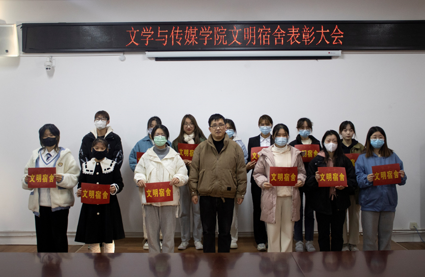 为进一步增强寝室凝聚力,营造温馨和谐的寝室氛围,培养当代大学生的劳动意识,12月2日下午,在东教A303举行了文学与传媒学院文明宿舍表彰大会。文学与传媒学院党委书记杨文艺,党委副书记刘影以及部分教师代表参加,会议由文学与传媒学院团委书记王磊主持。