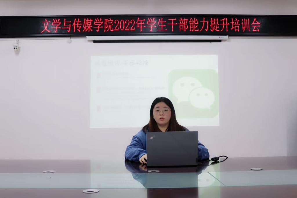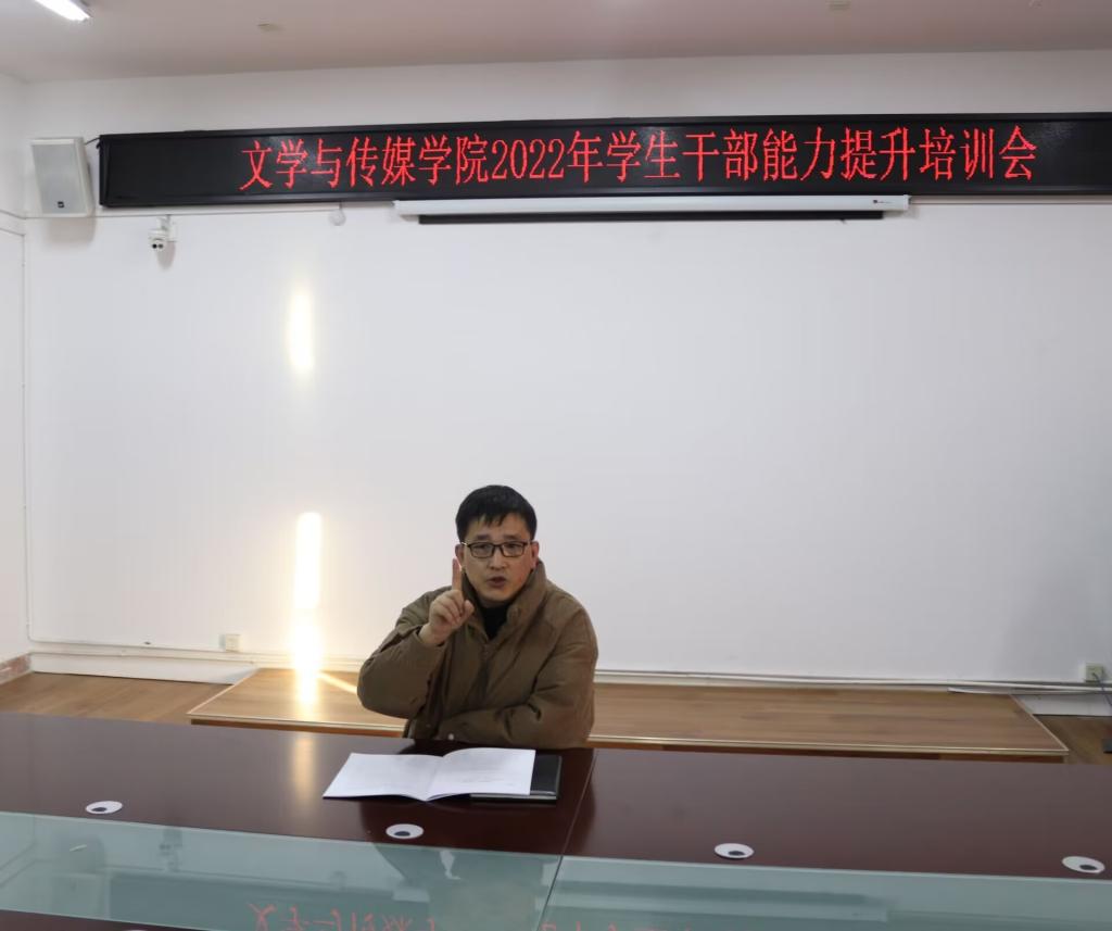 12月2日下午,文学与传媒学院在A303召开了学生干部能力提升培训会。学生会、班级主要干部参加此次培训会。文传学院党委书记杨文艺、2020新闻班刘松凯和汪文锐分别从如何去写工作报告,如何把握好新闻摄影角度,如何做好平台创作和运营工作三个方面作培训报告,抓住学科要领,分析就业形势,对学生干部应该具备的能力提出了要求。