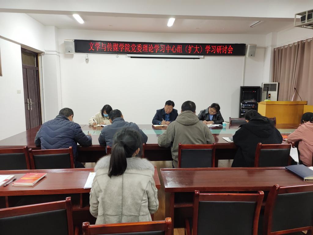 12月7日下午,文学与传媒学院在教学楼A303室召开党委理论学习中心组(扩大)学习研讨会,专题学习研讨党的二十大精神。校党委委员、副校长杨维志,巡察办主任赵国付,巡察办秘书徐艺列席指导学习研讨会,中心组成员、科级干部参加学习会,学习会由学院党委书记杨文艺主持。