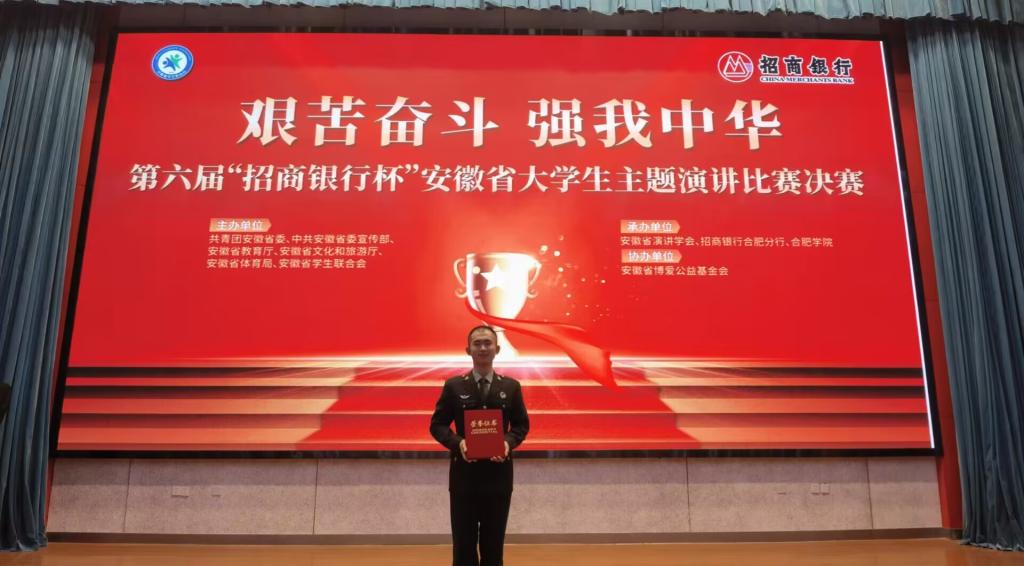 本次演讲比赛由团省委、省委宣传部、省教育厅、省文化厅和旅游厅、省体育局、省学联主办,聚焦学习宣传贯彻党的二十大精神,以“艰苦奋斗,强我中华”为主题,在指导教师吴琼瑶的精心指导下,温万年结合自身入伍的亲身经历,引导广大青年在职业选择中响应国家号召,积极投身军营。此次比赛也是安徽省课程思政示范课程《大学生职业生涯规划》教学效果的展示。