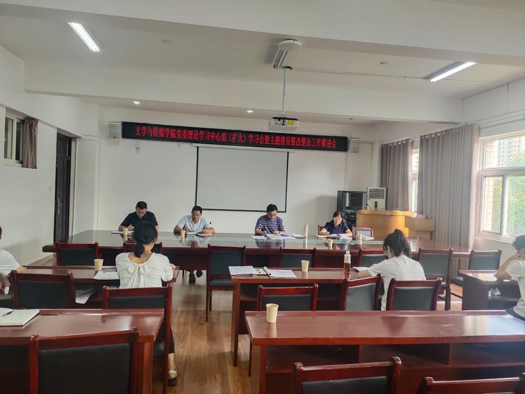 7月26日下午,文学与传媒学院在教A303召开党委理论学习中心组(扩大)学习会暨主题教育整改整治工作推进会,学院领导班子成员、科级干部、党支部书记、教研室主任参加会议,会议由学院党委书记杨文艺主持。