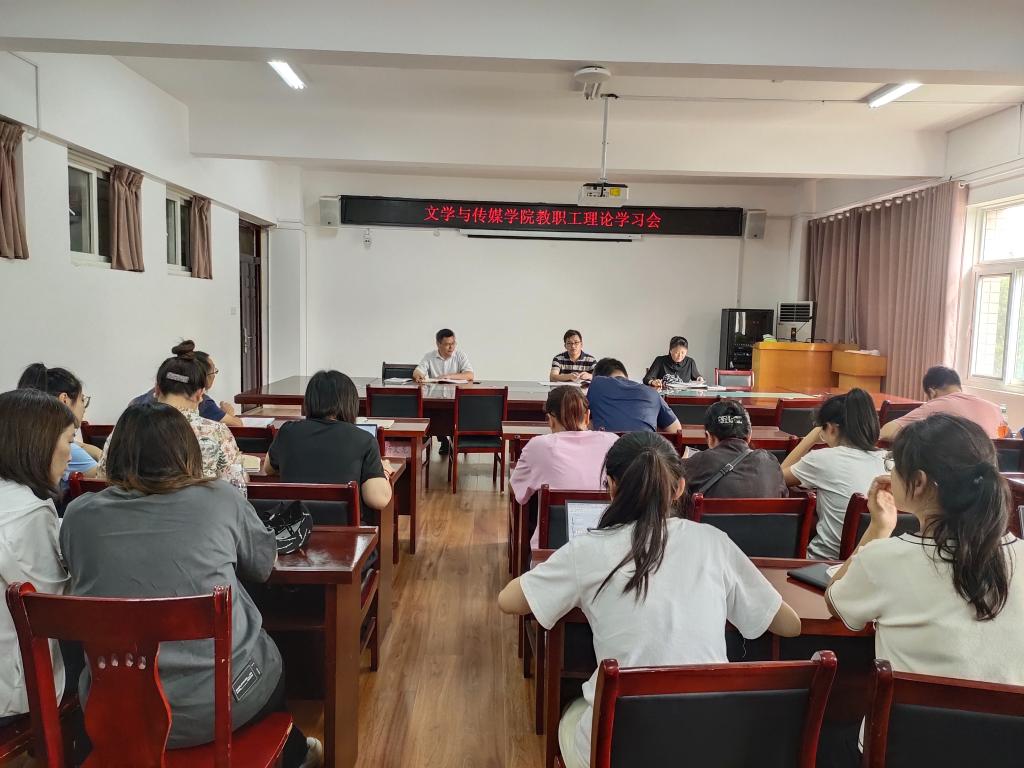 9月13日下午,文学与传媒学院在教A303召开教职工理论学习会,全体教职工参加会议,学习会由学院党委书记杨文艺主持。