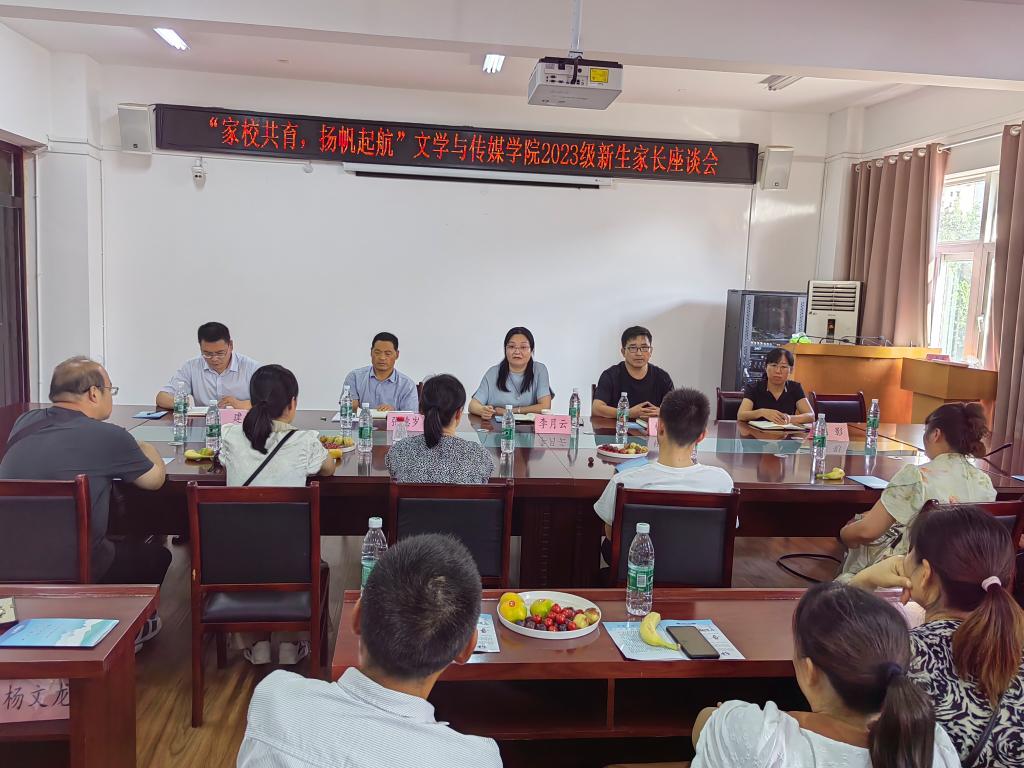 为落实三全育人理念,构建家校协同育人体系,形成家校共育合力,帮助新生和家长更好的了解学校及学院的情况,加强家校沟通,做好新生适应性入学教育。9月6日下午,文学与传媒学院2023级新生家长座谈会在教A303顺利召开,会议由党委书记杨文艺主持。校学工部部长李月云、院长张德岁、党委副书记刘影、副院长满建、副院长李娟、新生班辅导员以及新生家长代表参加座谈。