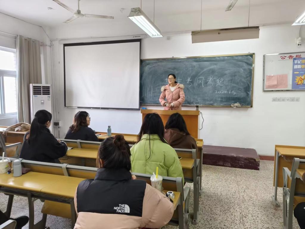 1月5日,辅导员吴琼瑶老师在21汉语言文学2班开展了期末考风考纪主题班会。吴琼瑶老师重点提醒了同学们期末复习积极备考的必要性,同时提醒同学们携带相关考试用具及考试证件,认真复习,从容应考,着装适宜等。