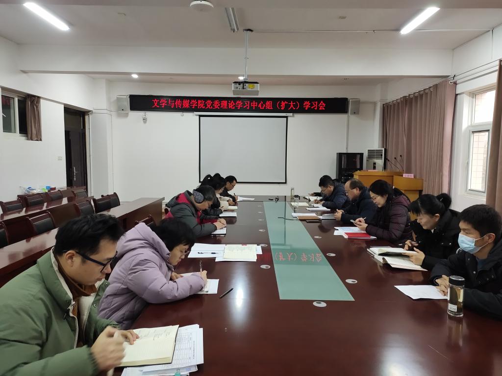 1月18日下午,文学与传媒学院在教A303召开党委理论学习中心组(扩大)学习会,学院领导班子成员、科级干部、党委委员、党支部书记及相关管理人员参加学习会,学习会由学院党委书记王金岭主持。