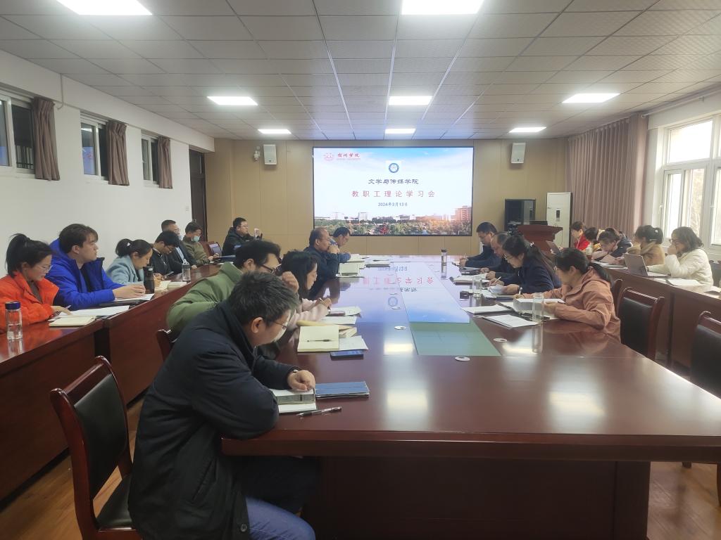 3月13日下午,文学与传媒学院在教A303召开教职工理论学习会,全体教职工参加会议,学习会由学院党委书记王金岭主持。