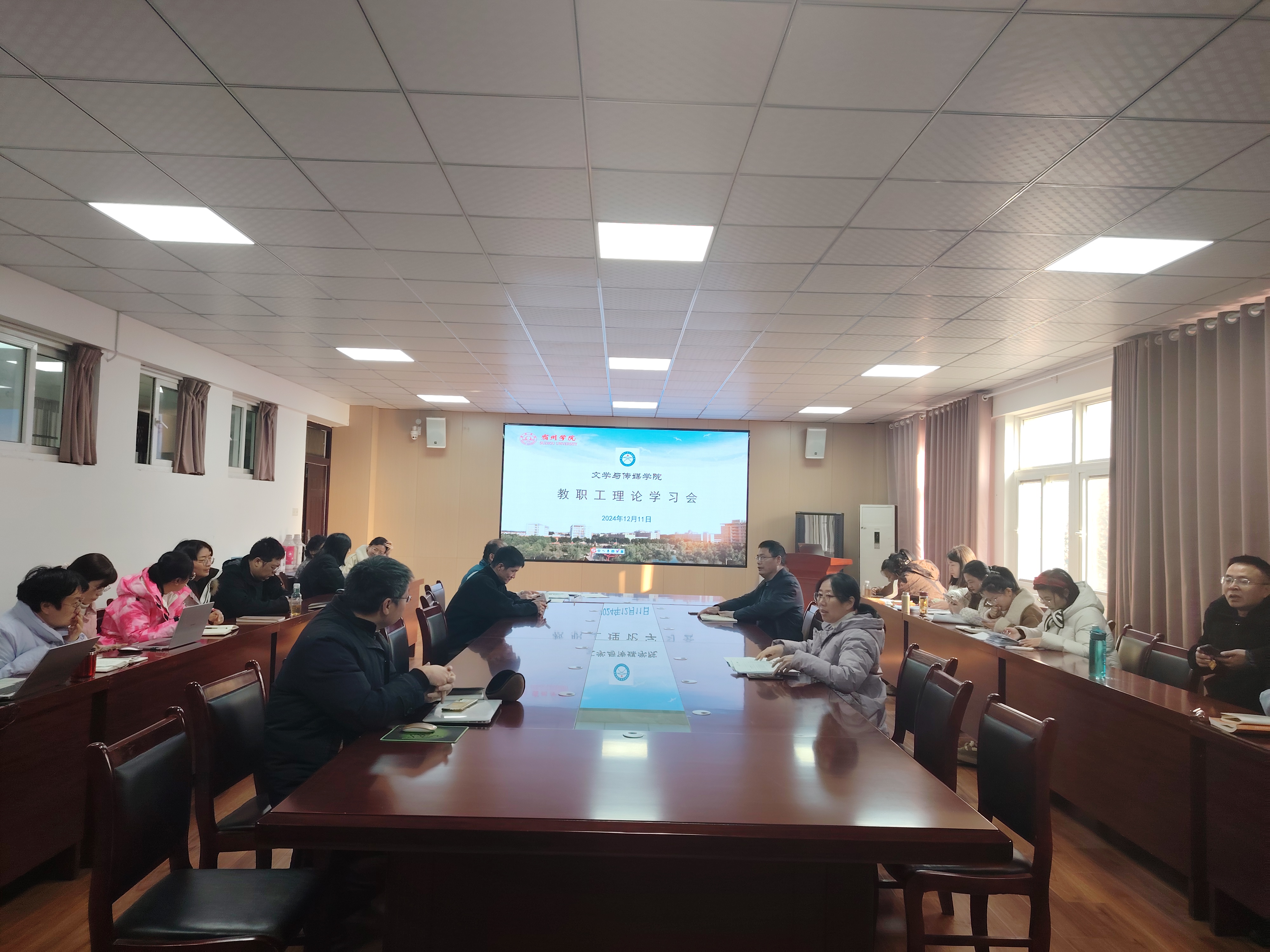 2024年12月11日,文学与传媒学院在教A303召开教职工理论学习会,全体教职工参加会议,学习会由学院党委副书记刘影主持。