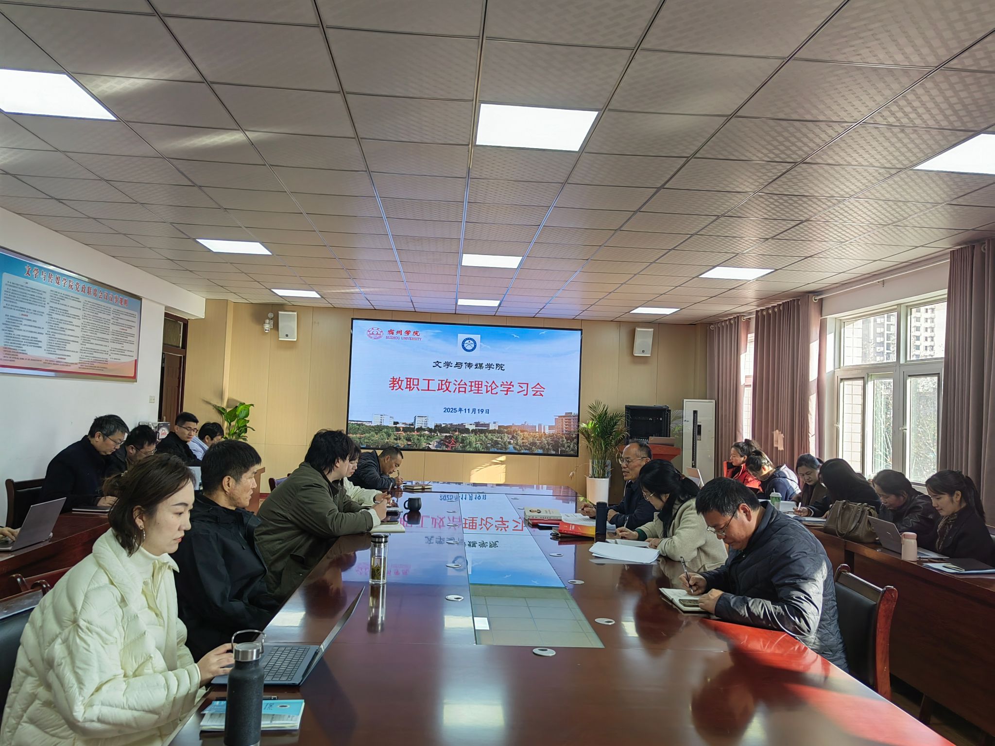 11月19日,文学与传媒学院在教学楼A303召开11月份教职工政治理论学习会。学院全体教职工参加了本次会议。会议由学院党委书记郝景东主持。