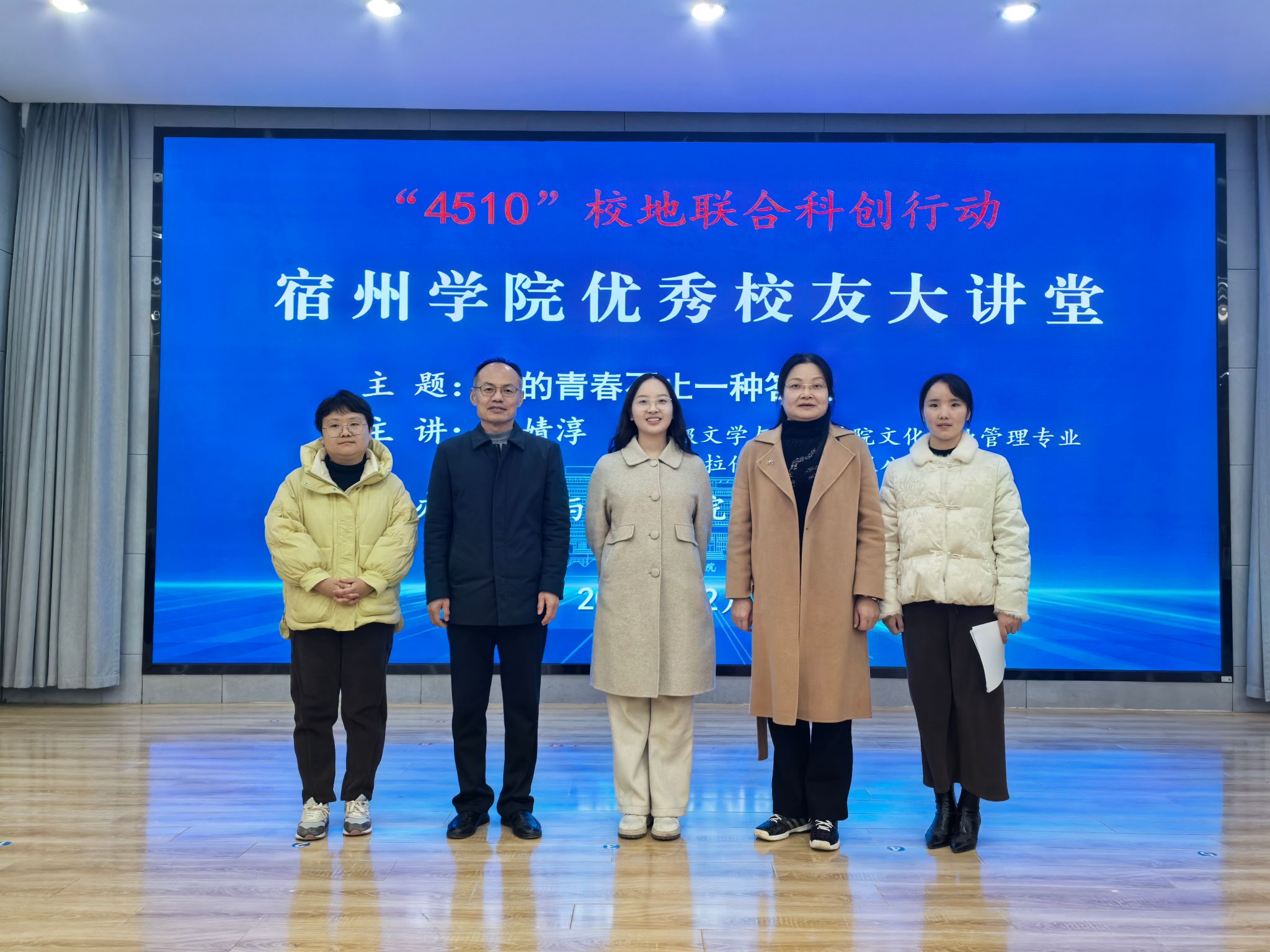 12月5日下午,文学与传媒学院举办宿州学院“4510”校地联合科创行动暨优秀校友大讲堂活动,活动特邀文学与传媒学院2019级文化产业管理专业优秀校友、湖州莉拉科技传媒有限公司总经理李婧淳,与在校学子分享其求学、创业与职业成长的经历与思考。学院党委书记郝景东、院长李月云、学生事务科科长吴琼瑶、文化产业管理专业教师邢雪娥老师,以及2023级文化产业管理班、2024级文化产业管理班、新闻班,数字内容生产与传播微专业等200余人参加活动。