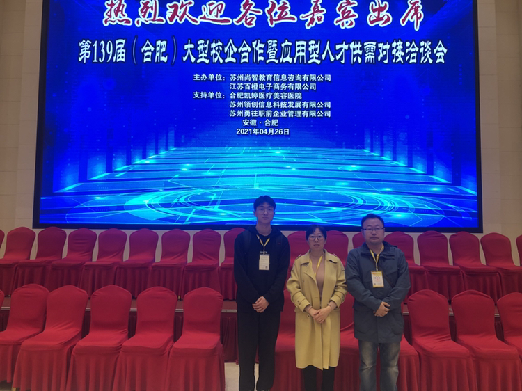 为进一步加强与各大企业人才供需合作,拓宽学院就业渠道、提高就业质量、促进与全国优质用工企业有效合作,建立互惠互利、长远稳定的合作模式,4月26-27日,文学与传媒学院辅导员刘影、教务员单冬冬和学生代表丁富豪参加在合肥举办的大型校企合作暨应用型人才供需对接洽谈会,并进行实地考察。