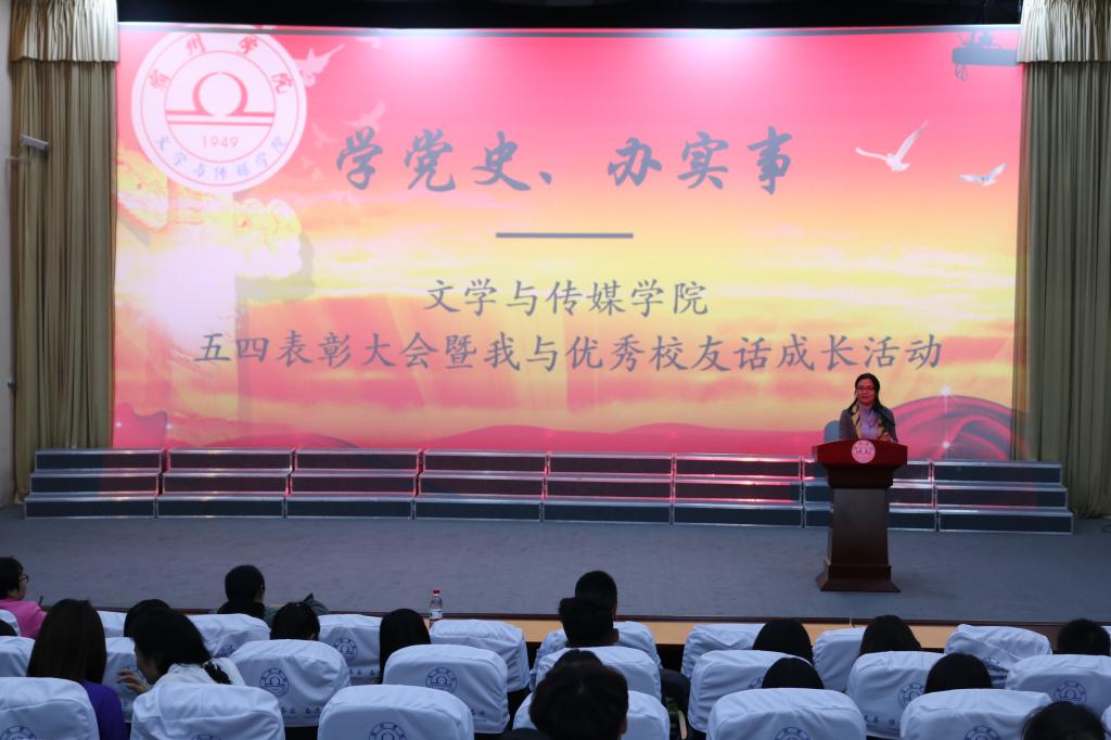 2021年4月30日中午,宿州学院文学与传媒学院于报告厅举办学党史、办实事——五四表彰大会暨我与优秀校友话成长活动,展现青年风采,凝聚奋进力量。文学与传媒学院党委书记李月云、组织员刘影、全体辅导员及2018级全体学生参加活动,活动由党委副书记王绍卫主持。