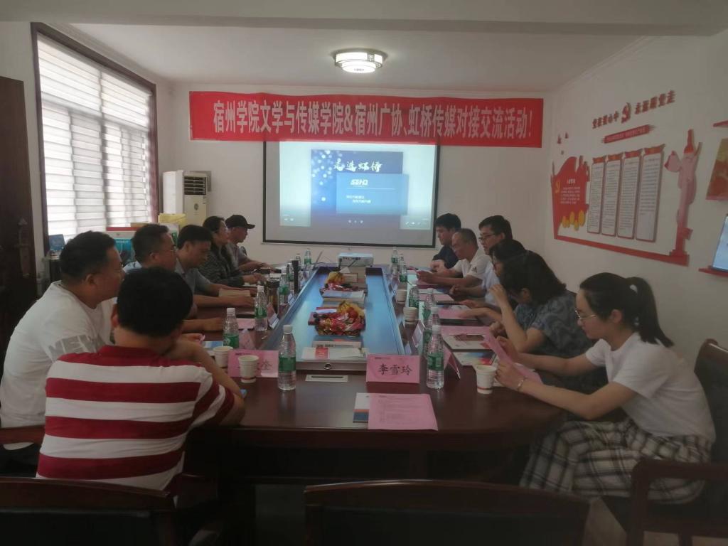 为进一步推进校企合作,拓宽文学与传媒学院实习就业基地,6月9日下午,文学与传媒学院党委书记杨文艺、党委副书记刘影、分团委书记王磊、携新闻教研室全体教师赴宿州虹桥文化传媒有限公司进行实地考察调研,受到公司董事长黄雁的热情接待,参与此次对接合作交流活动的还有宿州市广告协会及相关文化传媒公司负责人。