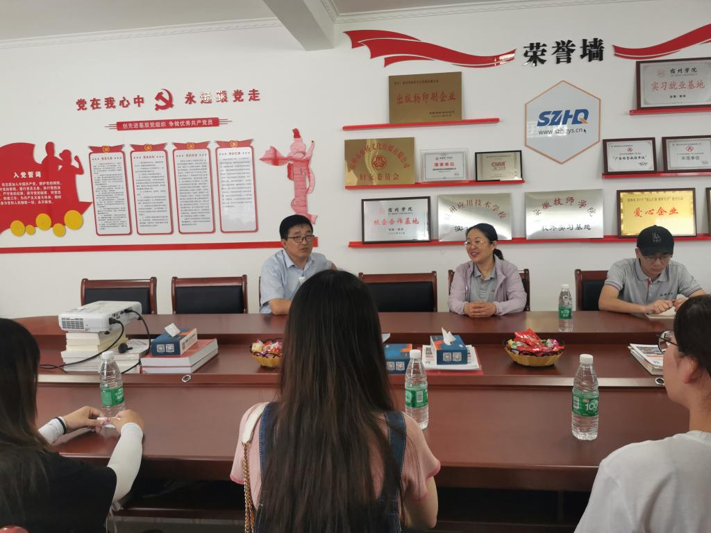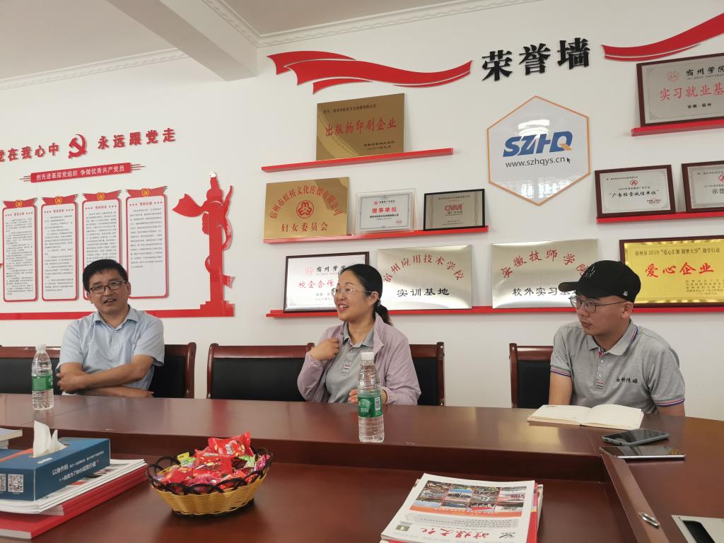 为做好2023届毕业生的实习就业工作,引导学生提早进入职场,2022年6月15日上午,文学与传媒学院党委书记杨文艺、辅导员吴琼瑶送四名学生赴宿州文化虹桥传媒责任有限公司见习。
