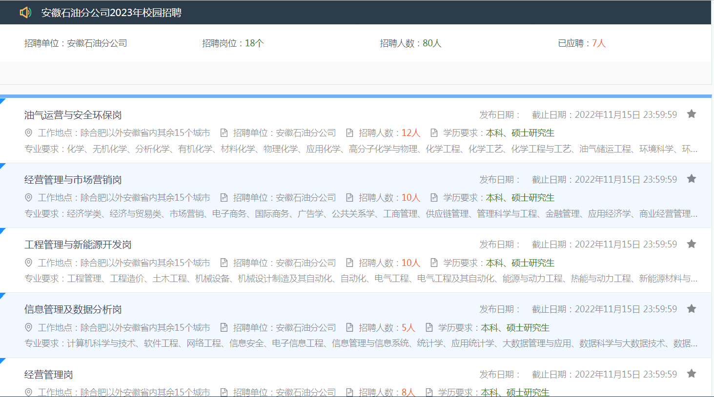 (三)2022年12月1日前,各招聘单位在中国石化人才招聘网站(http://job.sinopec.com)公布测试面试入围人选。