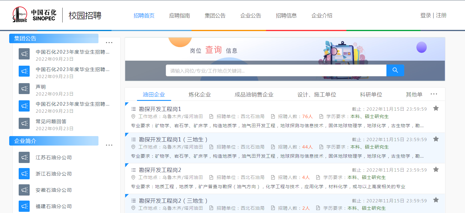 中国石化2023年度毕业生招聘统一初选考试公告