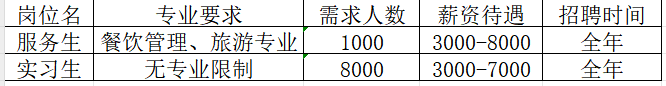 1.年龄18-26岁,男女不限,身体健康.品貌端正,踏实,稳重,务实,勤恳,积极向上,吃苦耐劳。2.高中及以上学历,具有责任心和良好的执行能力,严格按照相关标准操作,勤奋努力,对服务工作有较