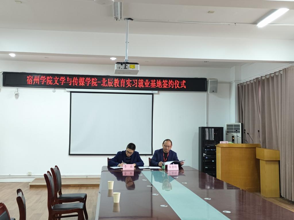 为进一步落实稳就业、保就业的决策部署,搭建毕业生与用人单位双向选择的平台。12月13日上午,文学与传媒学院党委书记王金岭、北辰教育区域总监徐竹平在教学楼A303举行实习就业基地签约仪式。