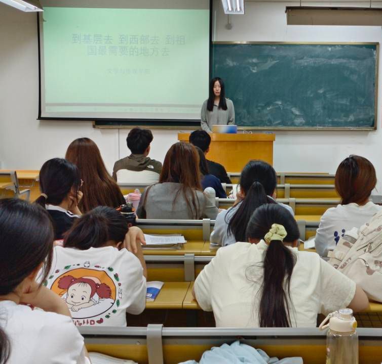 宫雨晴则分享了自己参加西部计划的经历和感悟。她建议同学们要注重社会实践,多参加实习活动,积累工作经验,鼓励同学们根据自己的实际情况,扎根基层、历练自我。