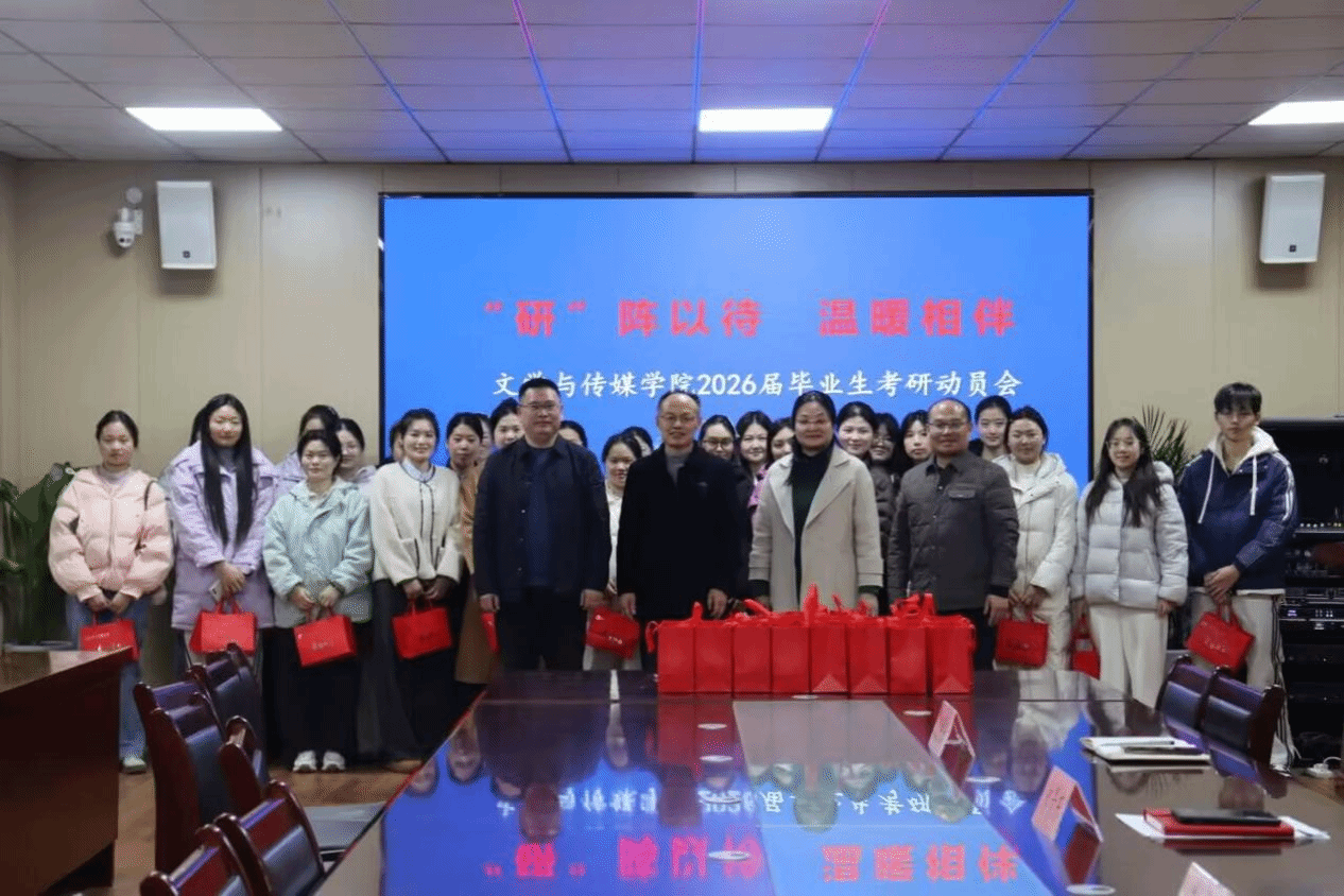 为帮助学子们缓解备考压力、提振迎战信心,文学与传媒学院于11月26日下午在教学楼A楼303会议室举行考研学子动员会暨暖心礼包发放活动。学院党委书记郝景东、院长李月云、副院长满建与2026届考研学子齐聚一堂,以关怀为翼,为追梦人鼓劲加油。