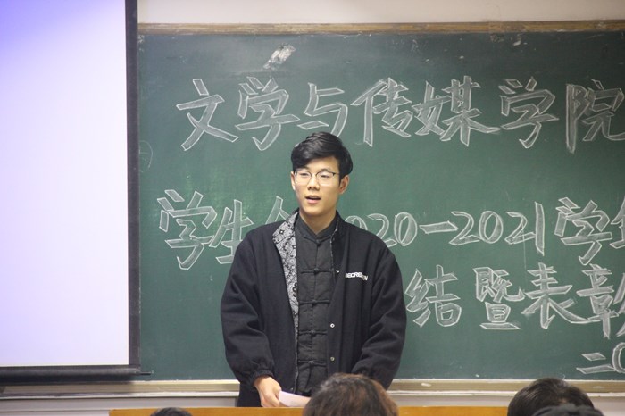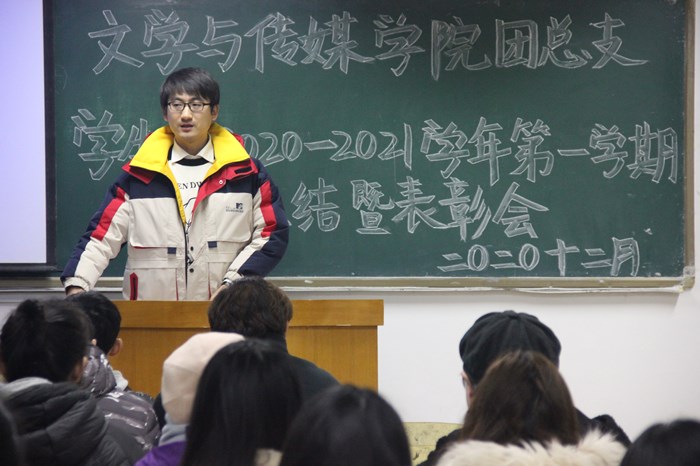 为推动文学与传媒学院团总支工作有序开展,12月29日晚18:30,文学与传媒学院团总支在A103召开2020—2021学年第一学期期末总结暨表彰大会。文学与传媒学院团总支书记张浩、团学各部门负责人以及第十一届学生会全体成员参加此次大会,会议由青年发展中心孙晓云主持。