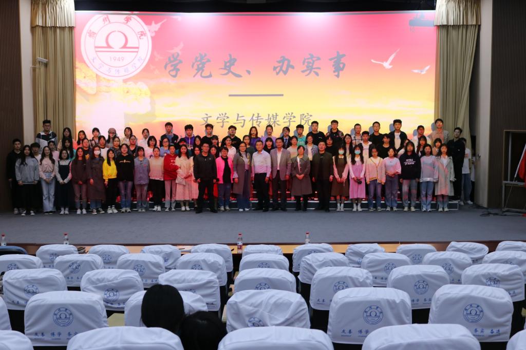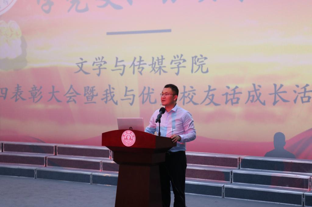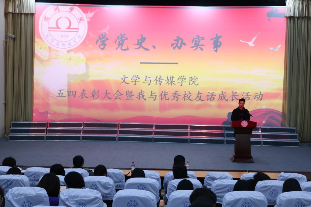 2021年4月30日中午,宿州学院文学与传媒学院于报告厅举办学党史、办实事——五四表彰大会暨我与优秀校友话成长活动,展现青年风采,凝聚奋进力量。文学与传媒学院党委书记李月云、组织员刘影、全体辅导员及2018级全体学生参加活动,活动由党委副书记王绍卫主持。