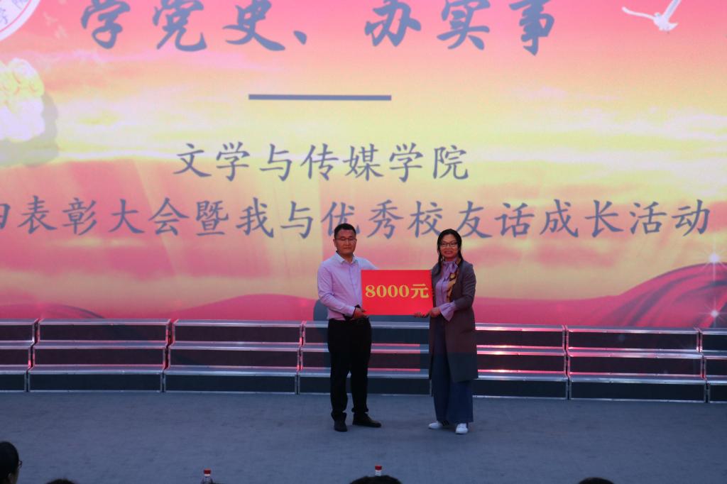 李月云代表学院接受张震8000元助学金捐赠。会后,张震与8名受资助的学生进行了座谈,鼓励学弟学妹树立职业生涯目标,抓住在校时间提升综合素质,发挥优势,应对时代变化,运用互联网时代的新媒体进行学习,成长为适应社会需求的复合型人才。