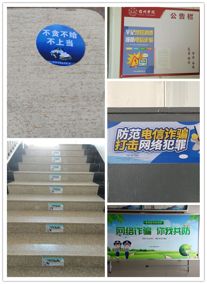 一是召开全院教职工会议,传达学校等相关工作的部署和要求,让全院师生牢牢树立安全防范意识。二是召开辅导员安全工作专题会议。具体落实各班级活动安排,要求各班通过主题班会、线上宣传、主题团日活动、社团活动等形式多样的渠道来开展网络安全教育。三是在教学楼公共区域、宿舍、教室等学生活动场所张贴醒目的宣传标语,通过标语中的内容让同学们对于诈骗形式和手段有了深刻的了解,也进一步揭示电信网络诈骗犯罪危害,加强警示教育,努力为在校学生营造更加良好的成长成才环境。