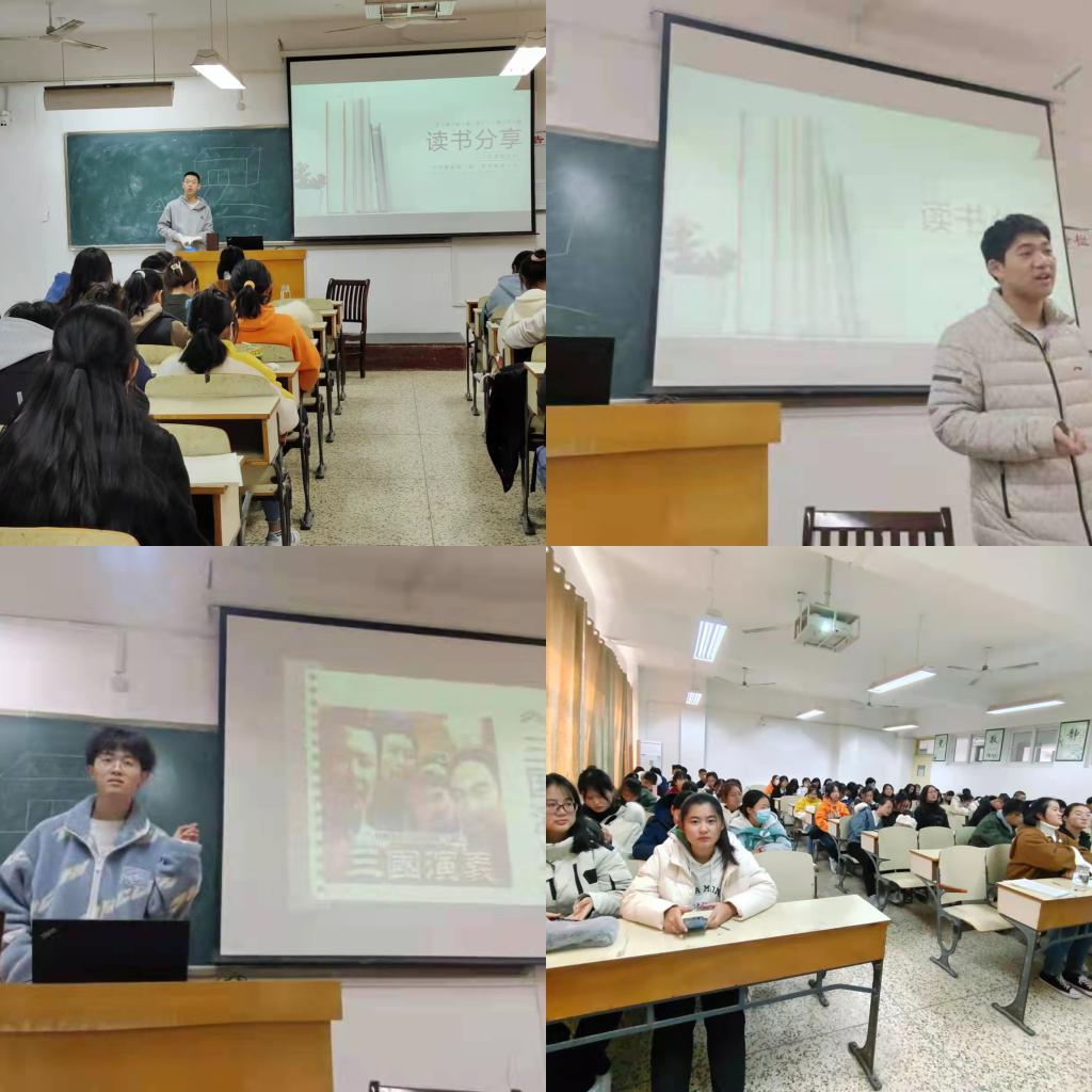 本次活动的主要是由同学们报名参加,通过ppt演讲的形式向其他同学介绍读书方法和推荐图书。张志鹏同学向大家介绍了鲁迅所写的《过客》,声情并茂的叙述了故事的主要内容,体会到鲁迅的深刻和伟大。冯成毅同学给大家介绍了《水浒传》,同学们围绕着《水浒传》展开了热烈的讨论,吕哲楷向同学们阐述了他对于《三国演义》的不同见解,让同学们更加详细了解到三国历史中的细节。