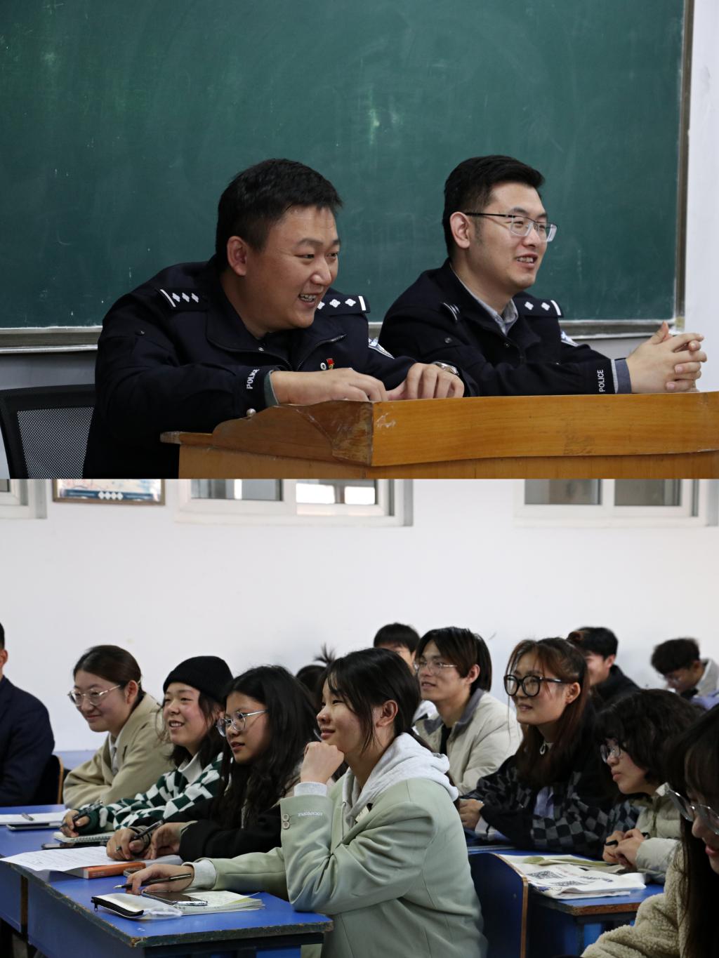 身着警服的警官在讲台上笑问:“国家反诈中心APP,你们都下载了吗?”同学们笑着大声答说:“当然,都下啦!”11月26日上午,在教学楼A楼314教室里,宿州市区反诈民警进入文学与传媒学院新闻采写课堂,现场气氛活跃,教室里不时传出阵阵笑声。“反诈宣传”与“课堂专访”碰撞出奇妙的火花。