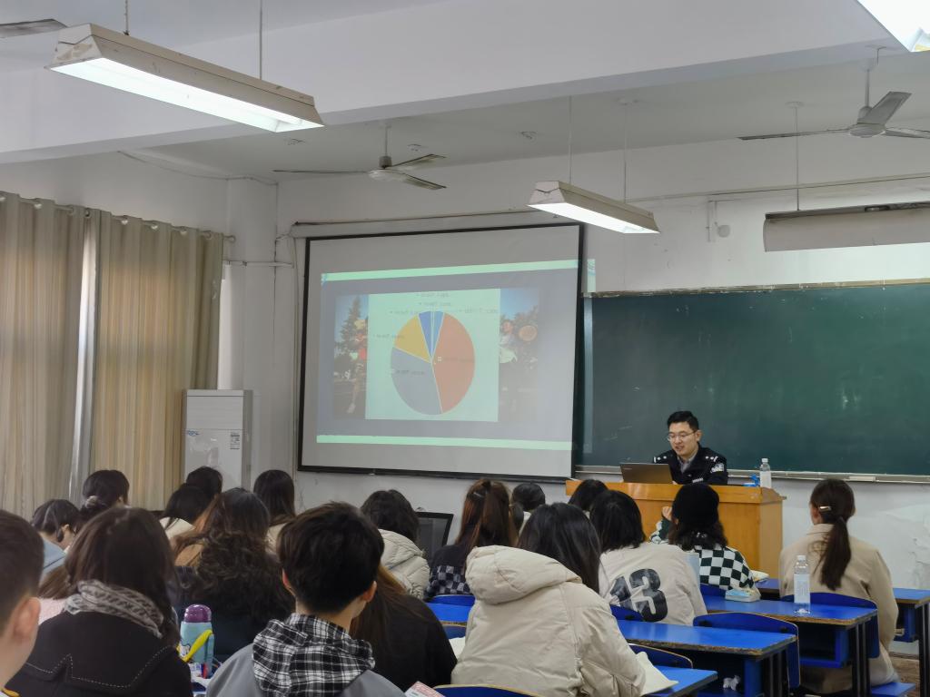 两位警官基于学生提出的问题,详细介绍了电信诈骗的惯用手法、最常见的诈骗形式、遭遇电信诈骗的主要原因等方面的内容。并就同学们关心的大学生电信诈骗案例进行了重点讲解和分析,对“大学生如何防范电信诈骗”和“发现受骗后应该如何做”进行了详细的说明。