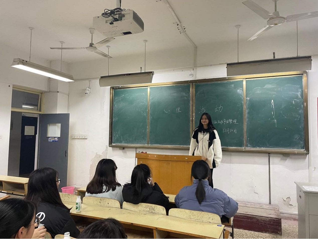 为增进班集体的凝聚力,培养同学们积极、健康、向上的生活态度意识,12月10号,文学与传媒学院21文化产业管理班在教学A楼召开以“和谐班级,沟通你我”为主题的心理活动。本次活动由班级心理委员王艺云和徐修浩主持,全体同学参与。