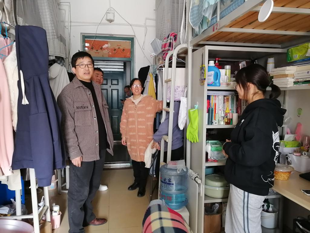为深入了解学生思想生活状况、加强学生疫情防控形势教育,11月29日中午,学院党委书记杨文艺、党委副书记刘影,携全体辅导员一同走访各年级学生宿舍,实地了解学生学习生活情况。