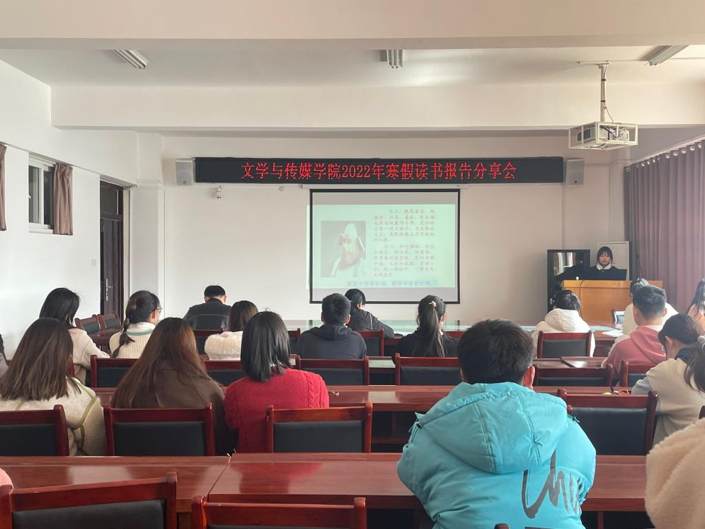 为了鼓励学生利用寒假时间品味经典,体会阅读的乐趣,汲取知识的力量,文学与传媒学院于3月3日下午1点在教学楼A303举办了寒假读书报告分享会。文学与传媒学院党委副书记刘影及全体辅导员,学院各班级学生代表参加了此次活动。