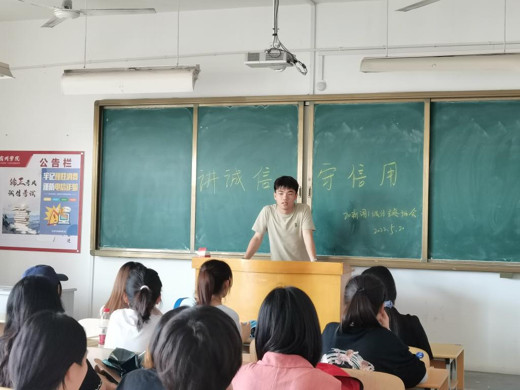 为培养新时代大学生的诚信品质,教育引导学生树立诚信意识,引导青年学生讲诚信、树诚信、践诚信,文学与传媒学院开展诚信教育主题班会系列活动。