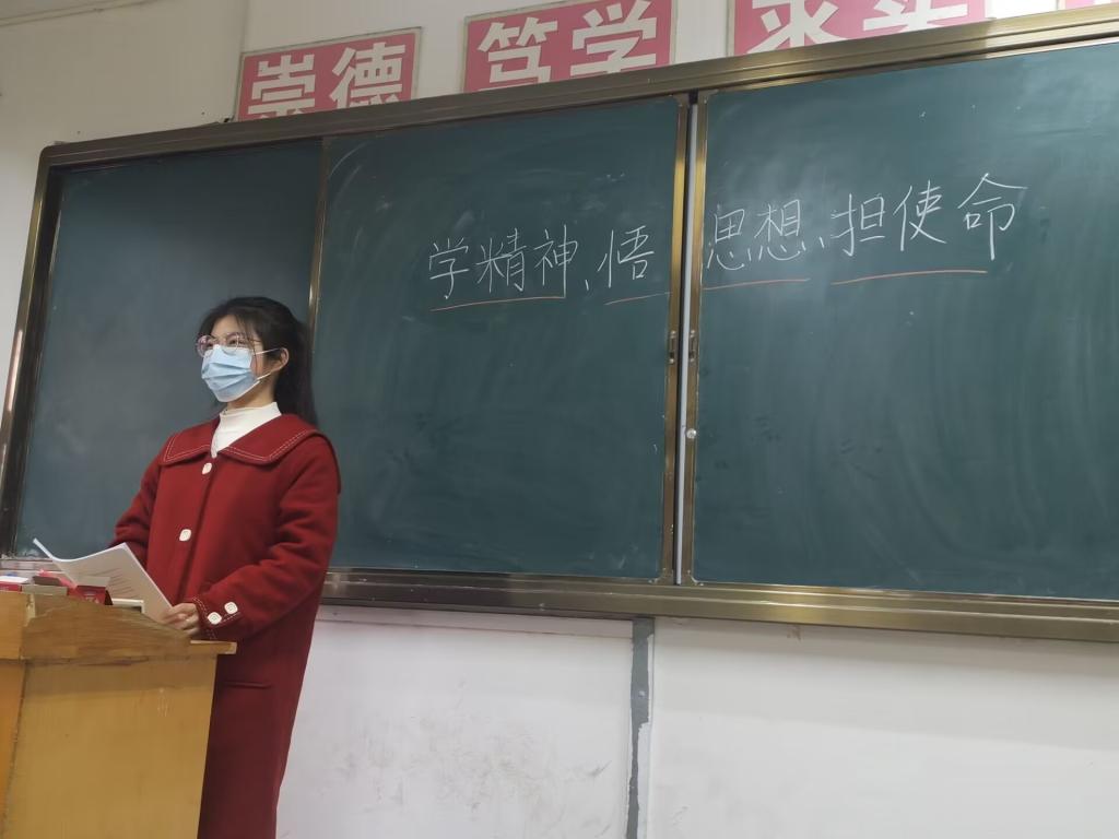 会后胡可同学带领同学们明确个人使命:我们青年大学生应当努力学习,积极实践,为实现中华民族伟大复兴而团结奋斗!生在红旗下,长在春风里,人民有信仰,国家有力量,民族就有了希望!