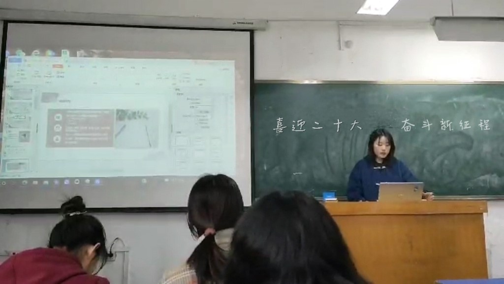 2022年11月25日,2020级汉语言专业的盛子慧走进班级,在教学楼A412开展了关于“学习党的二十大精神”的宣讲活动,此次宣讲主要从二十大报告的解读、党的二十大的重要意义以及新时代下青年大学生该如何作为等三个方面进行,旨在宣传发扬党的二十大精神,帮助同学们更好地学习二十大,践行二十大精神。