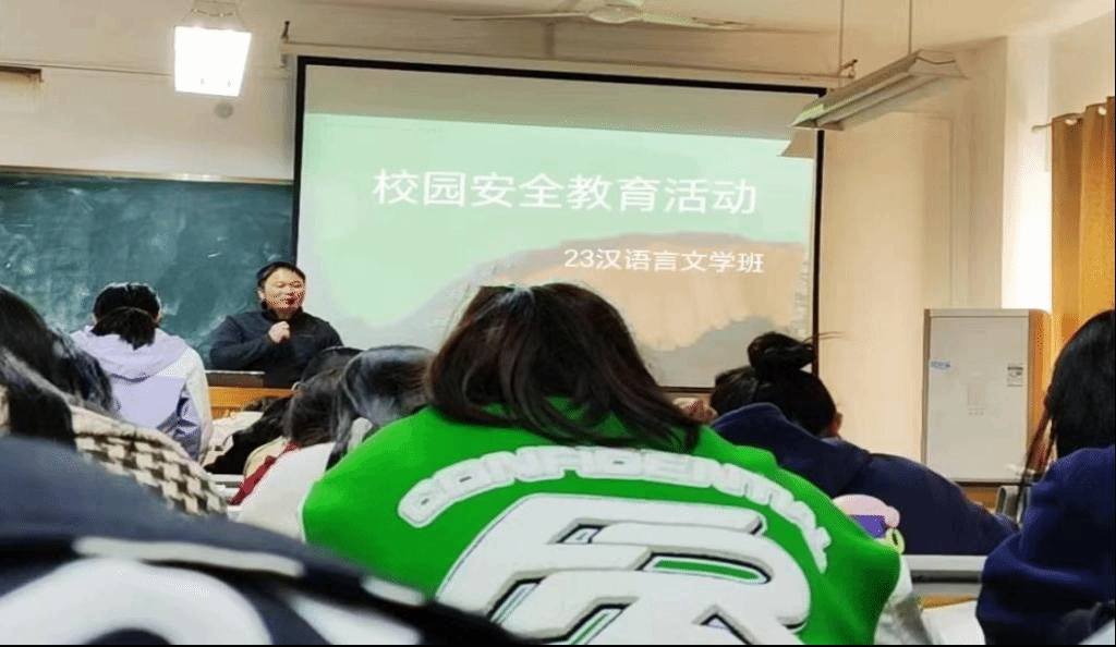 为深入贯彻落实习近平总书记关于加强校园安全工作的重要指示精神,持续强化校园安全教育,2024年3月28日下午,我院23汉语言文学班在教学楼A415开展校园安全教育活动。此次活动由班主任刘子成老师主持,23汉语言文学班全体同学参加。
